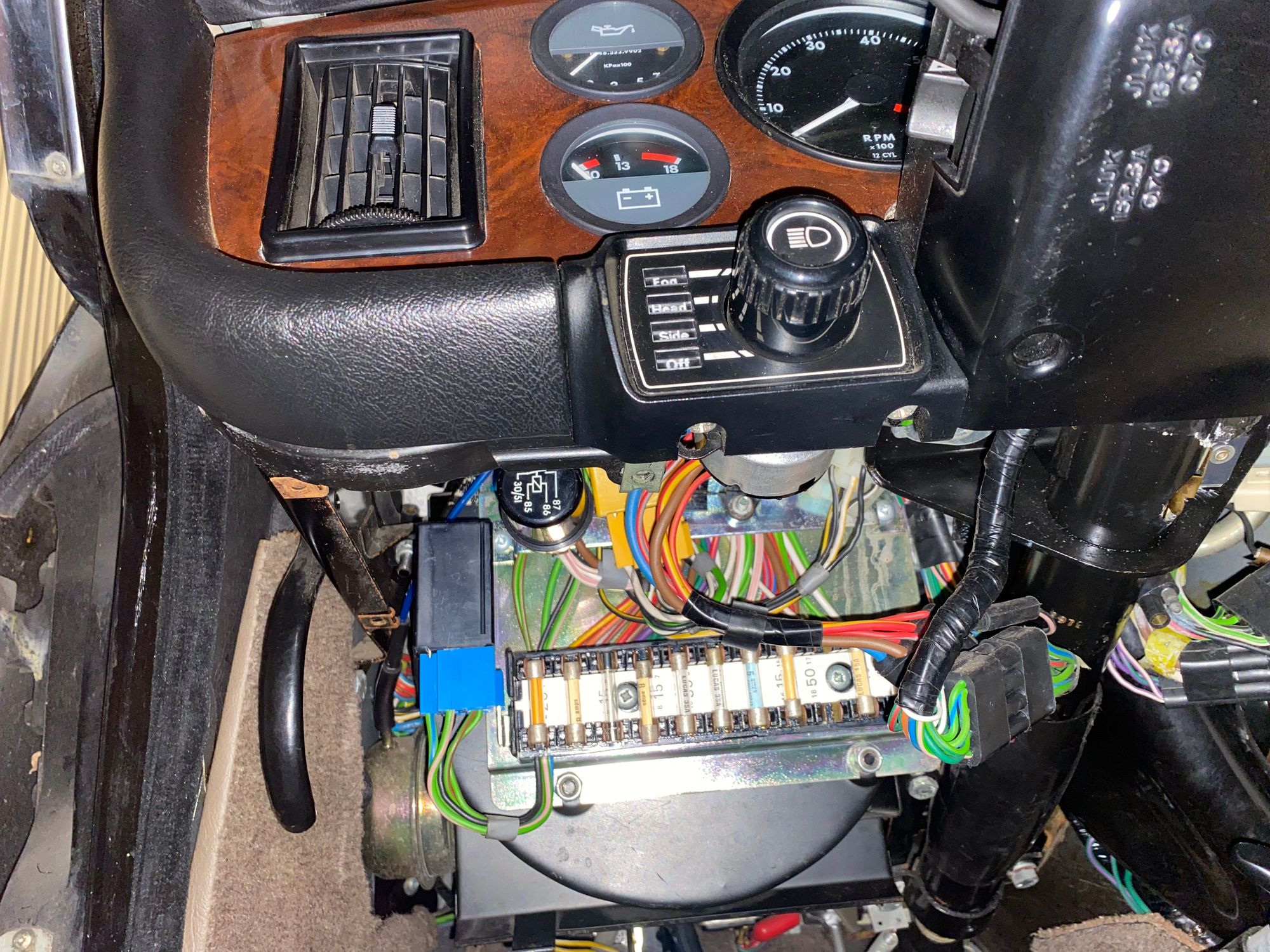 Blue hose visible next to the round black relay, headed upwards.