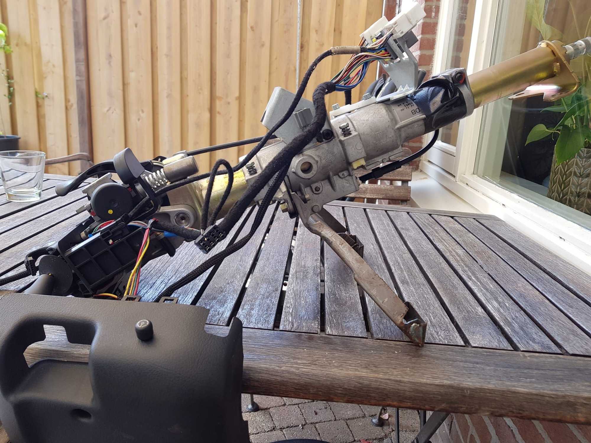 This is the side view (notice the 'bicycle brake' cable on the right bottom of the column)