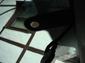 Rearview mirror housing shown from top. this entire piece is solid metal. in the center you see the stainless steel piece with three springs sticking up - one in the center allows the retaining ring to slide over it, and two on either side that catch the grooves on the sides of the retaining ring.