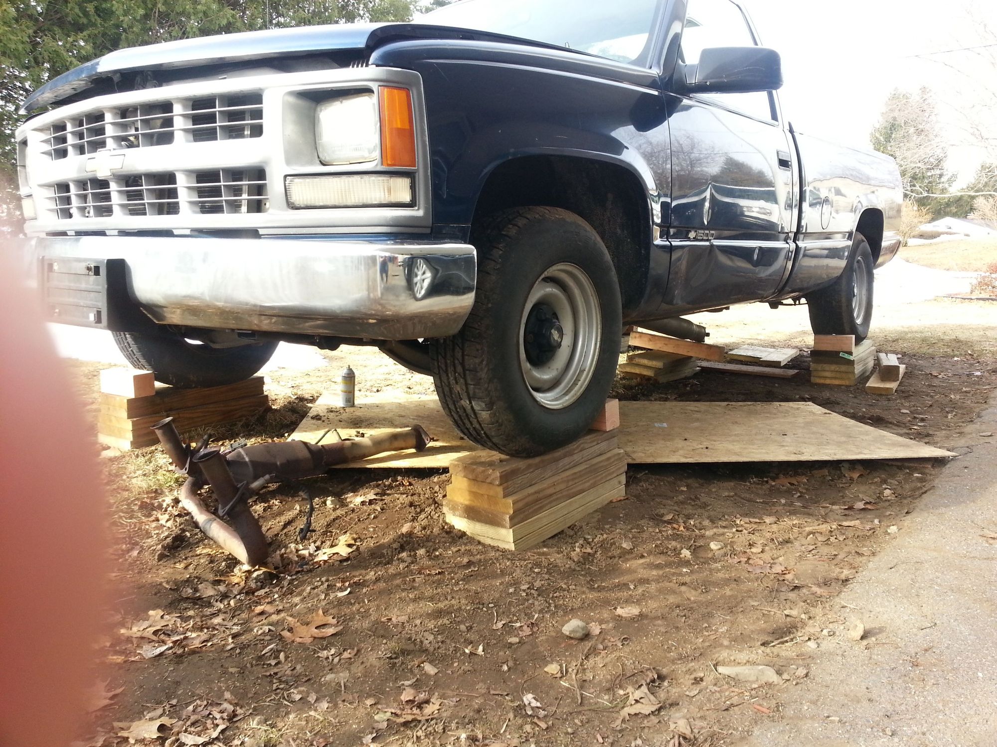 Hillbilly boyeee!! Back in 2018. Pressure treated lumber with exterior screws. I replaced the starter ring. It was a $600 truck. The transmission rolled sideways on the tranny jack and spilled fluid on the plywood that had been snowed upon. Add some speedy dry and you guess the mess. My advice: don't.