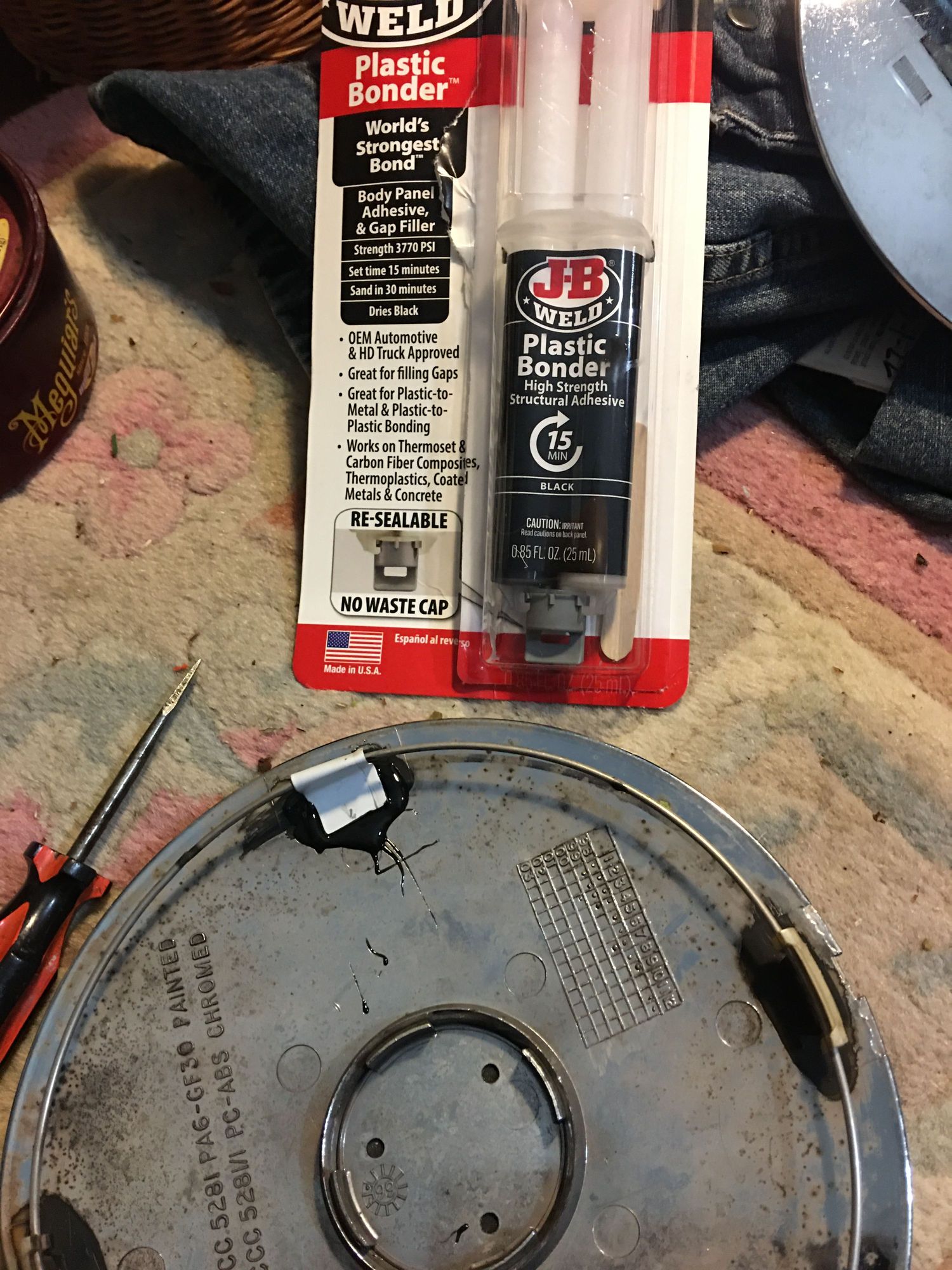 I used this stuff to repair the black plastic, front inner wheel wheel covers on my ‘87 BMW. Hope it works on this.