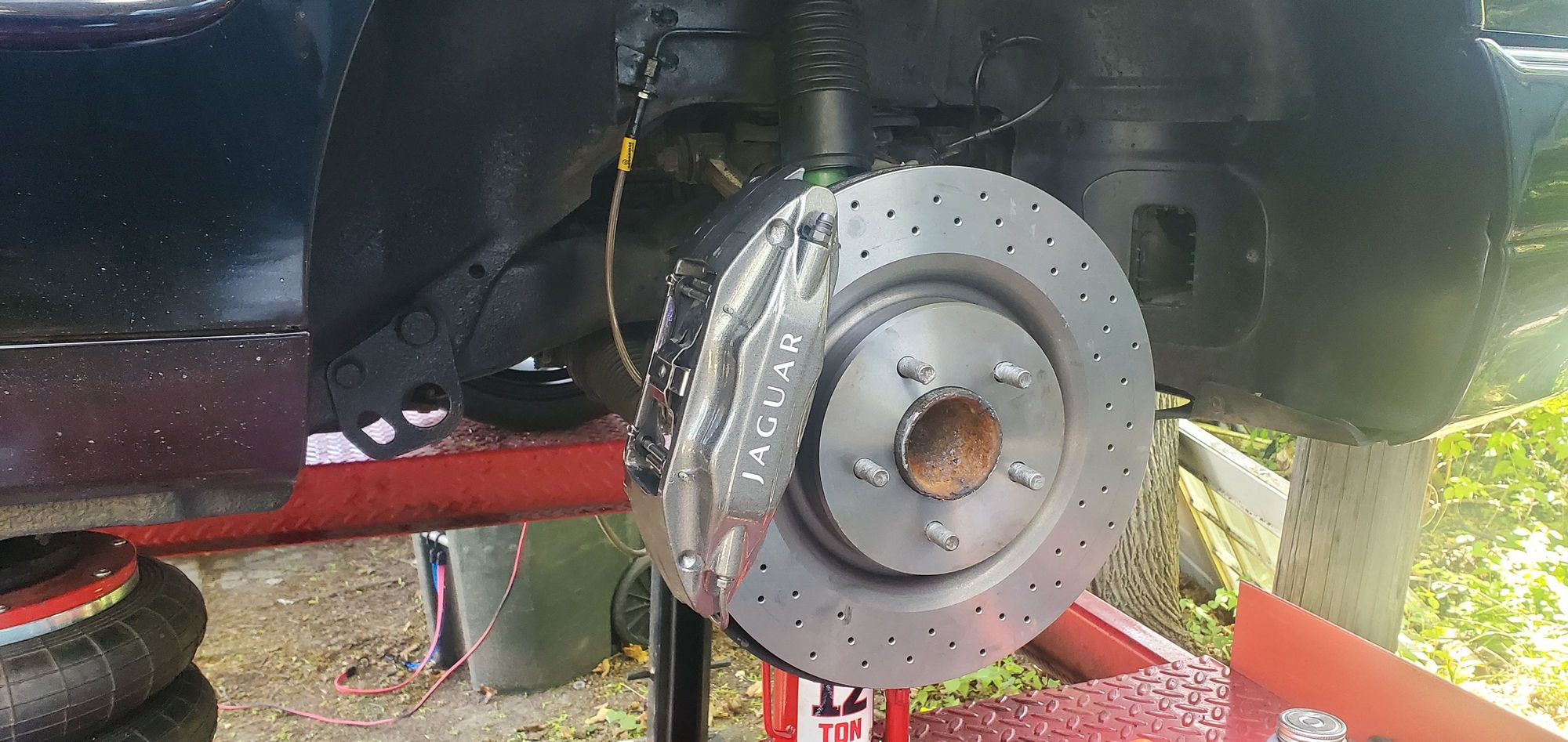 The hose connection is the same as stock, install rotor and caliper