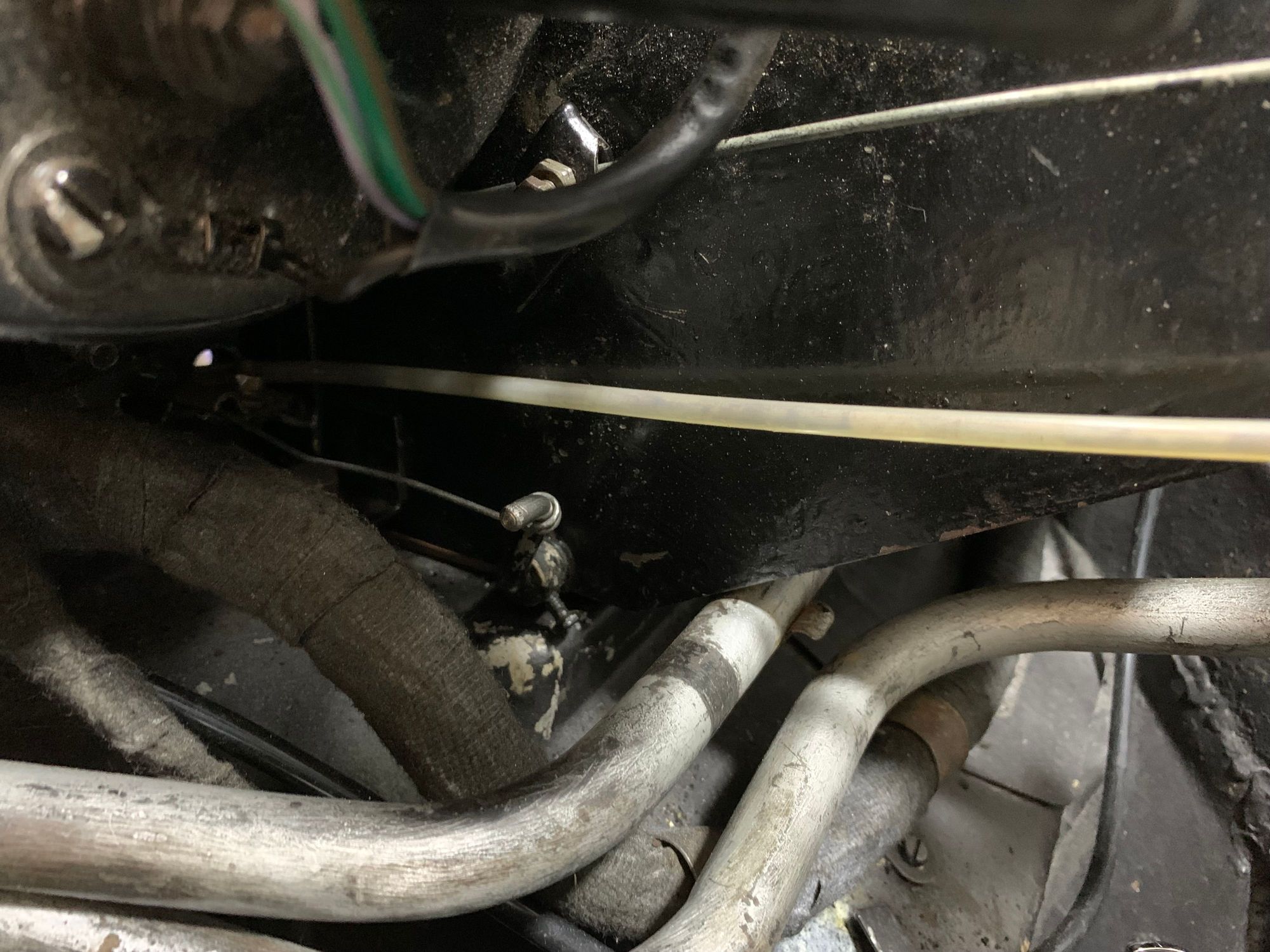 Showing the cable from the Car/Screen lever within the car to the lever attachment of the opening flap
