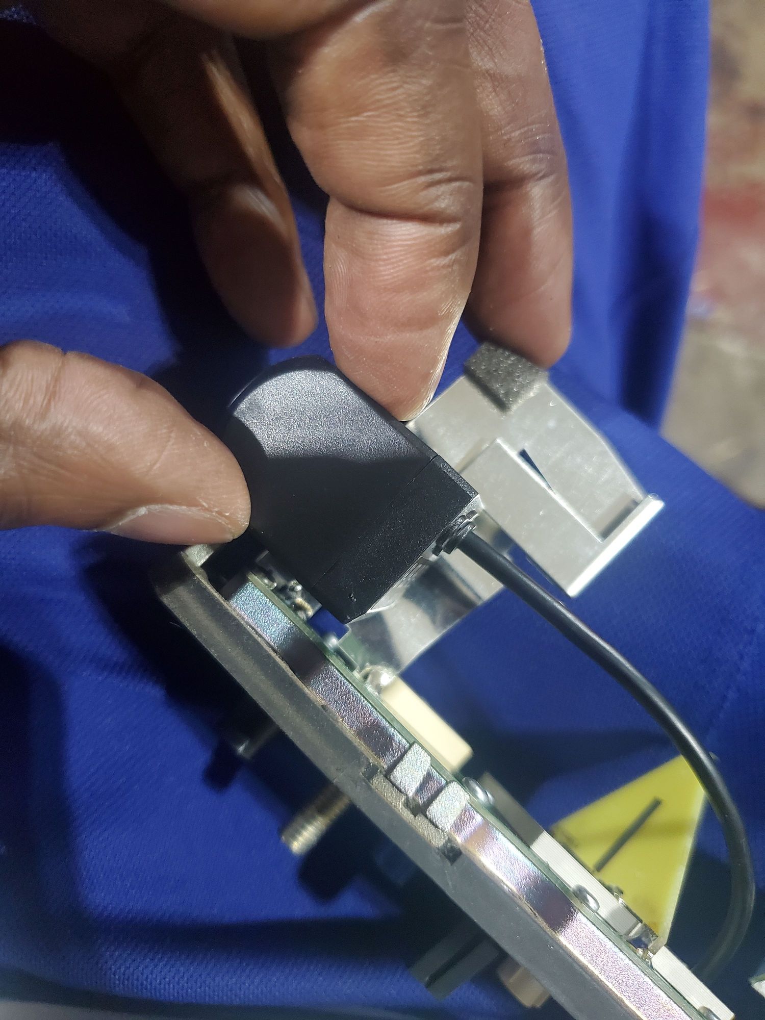 I didn't want to fully rid of this aluminum part. I lined the camera to trace around it..then used snips to cut it out. I made remove the case of the camera also. Its sealed inside and has half and inch of hollow space. Plus it will not be exposed to the weather.