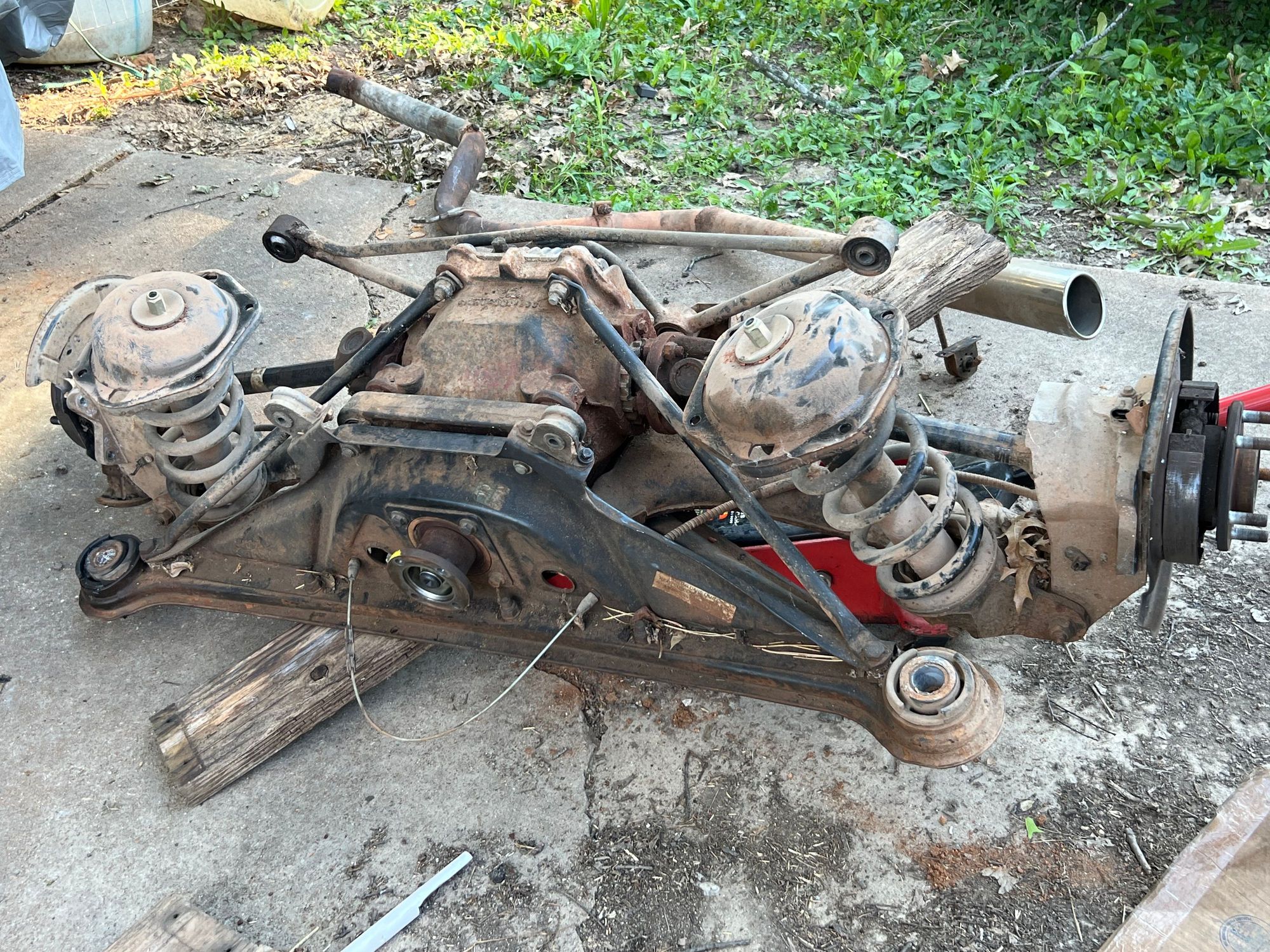 Complete rear axle assembly out for refitting with a salvage differential