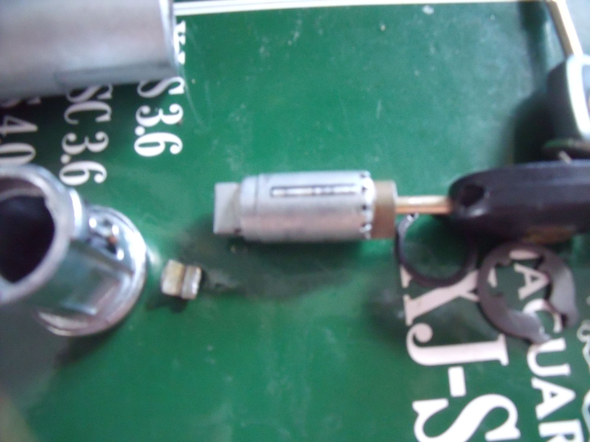 My black in the lock cylinder with the roll pin dropped down into the cylinder slot. Discs 5 and 6 don't consistently rotate enough to allow the pin to drop down out of the groove in the lock barrel.