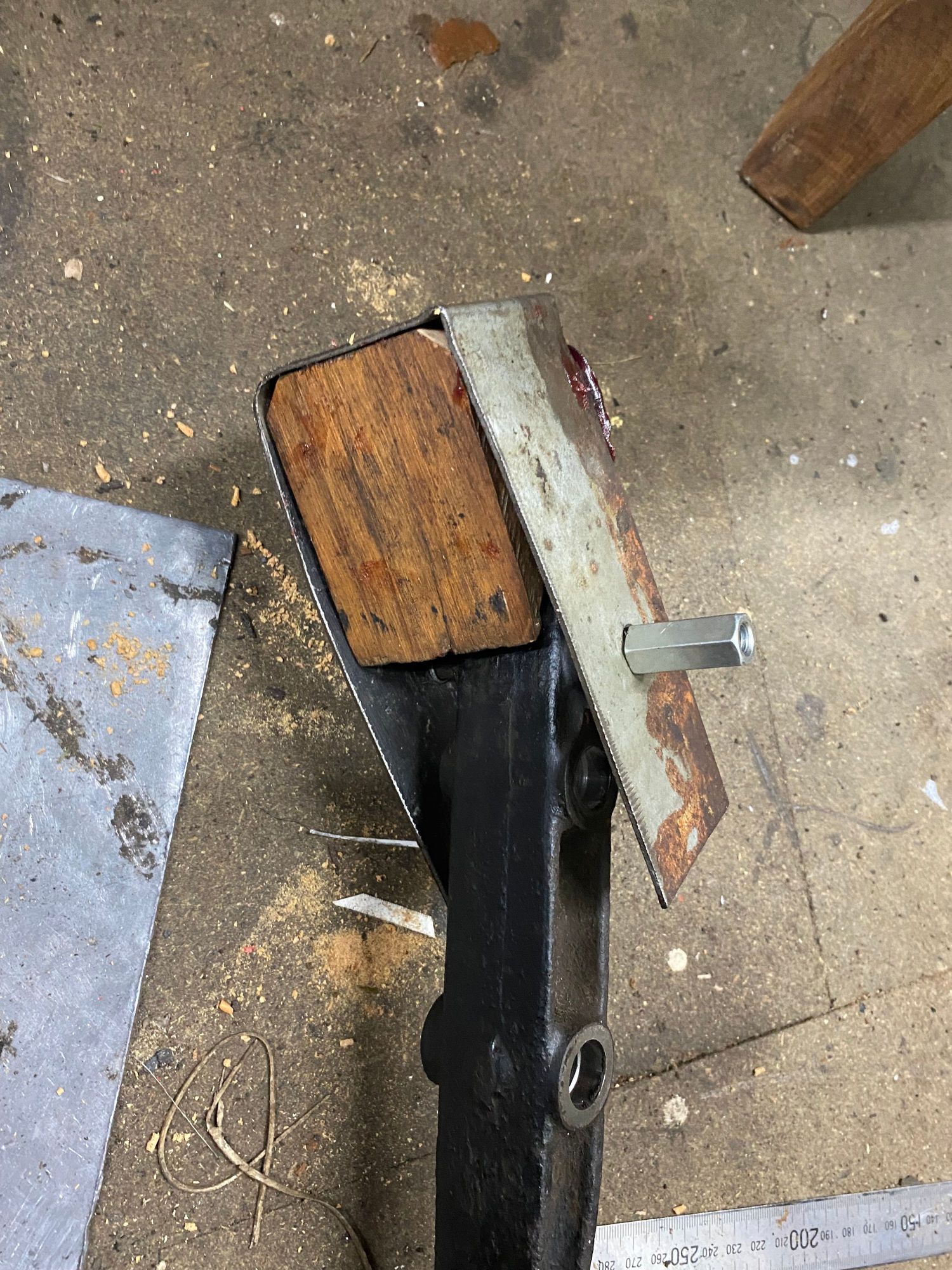 Make the restraining strap. Note - cut a chamfer on the wedge corners to allow for strap radius on bend. It must be a tight snug fit.