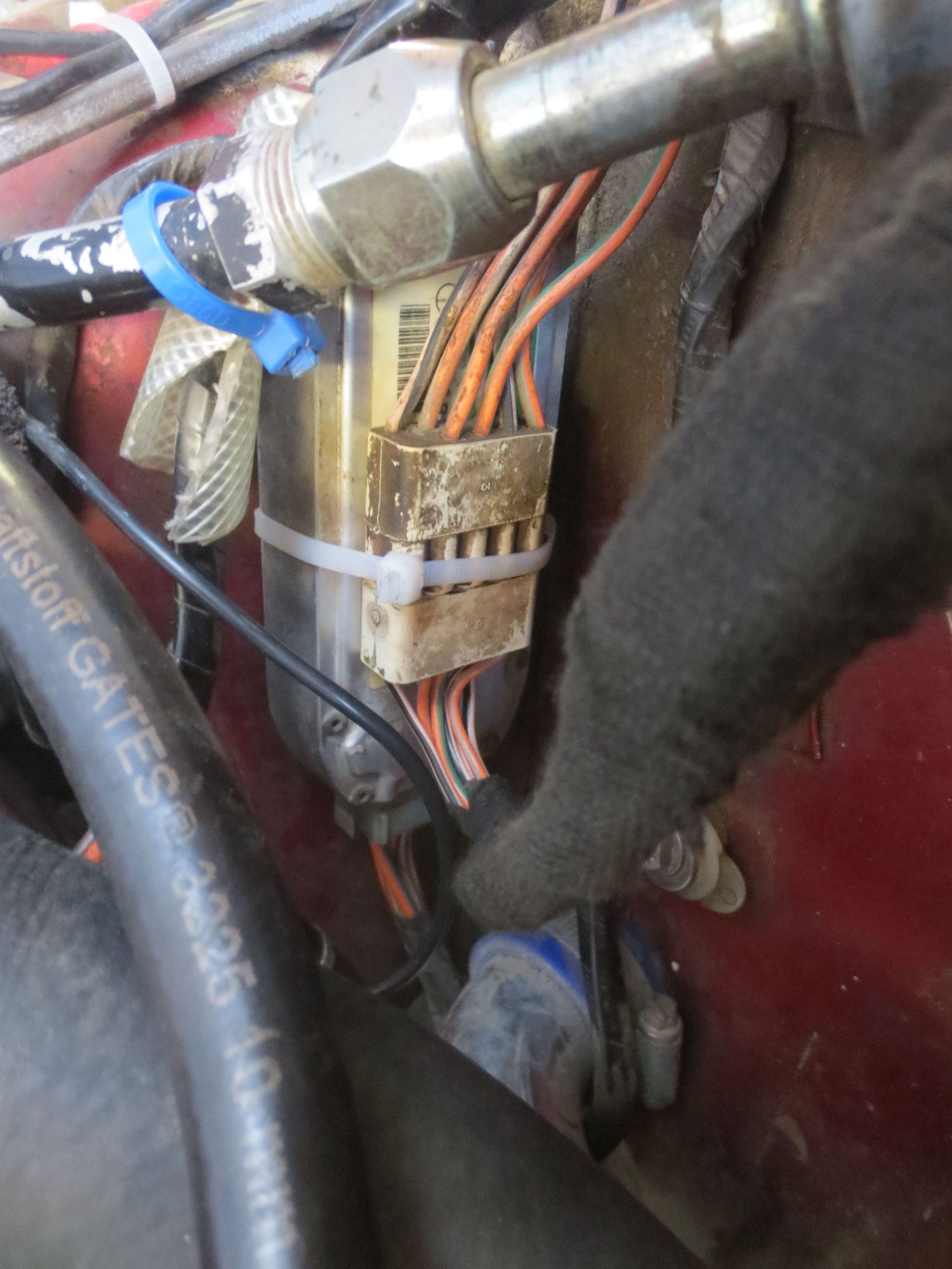 Close-up of the spliced OEM injector loom plug connected to the car loom.