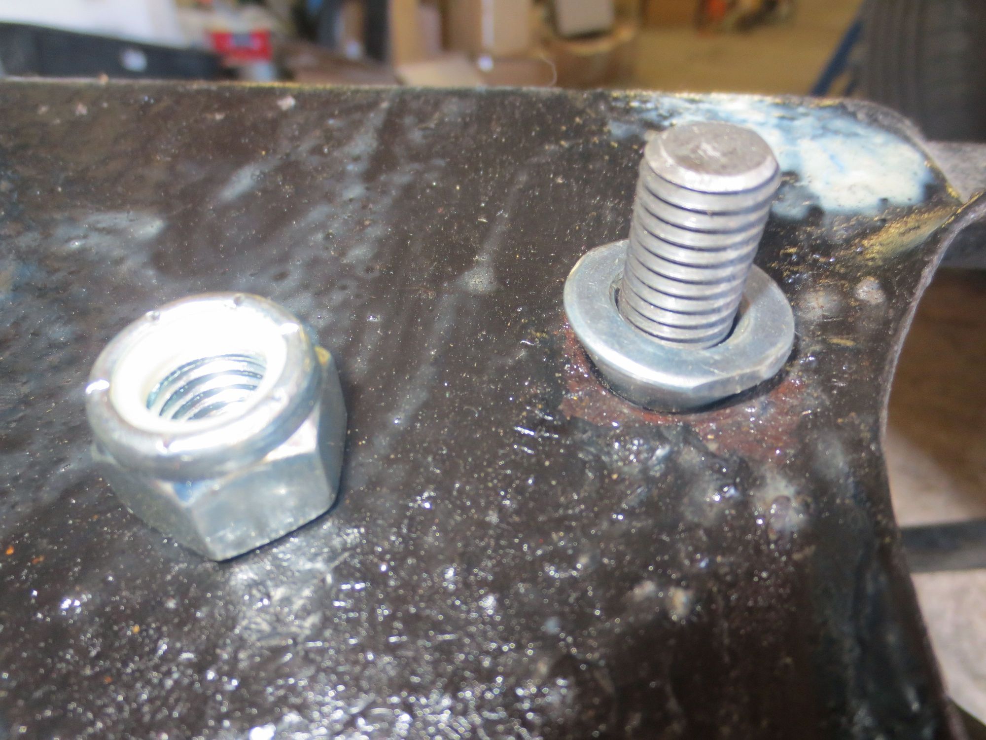 1/2 inch UNC studs into the diff, loctited in. taper washers and nylocs