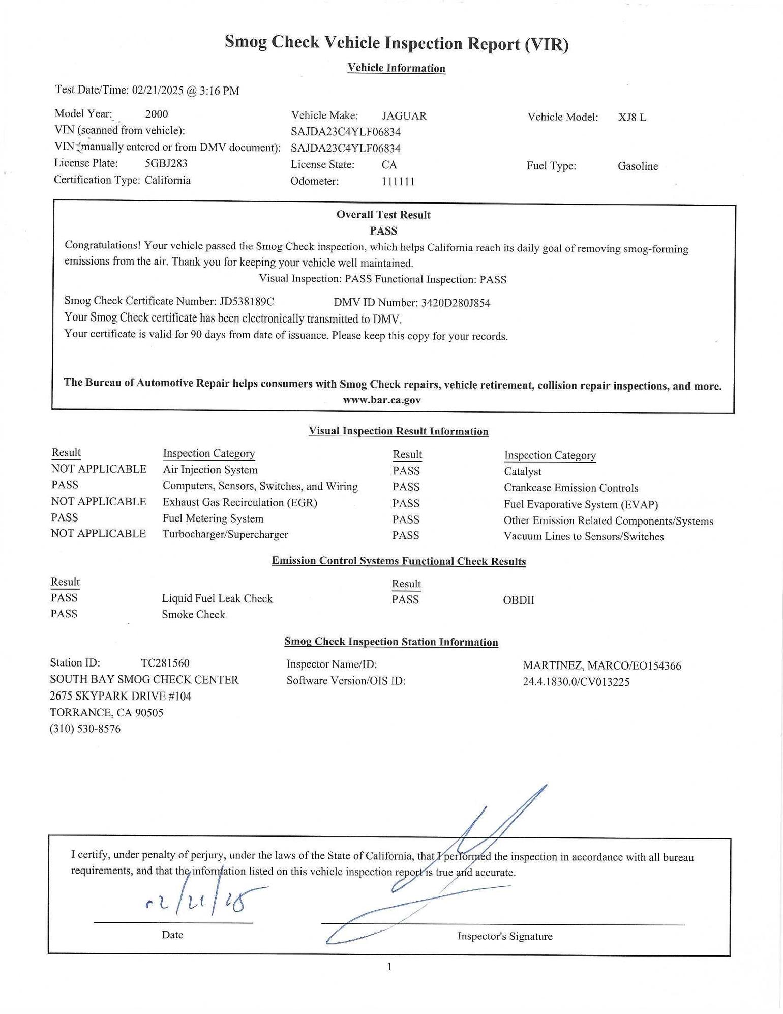 CA Smog Check Passed Good Through 02/27. Buyer does not have to do anything.