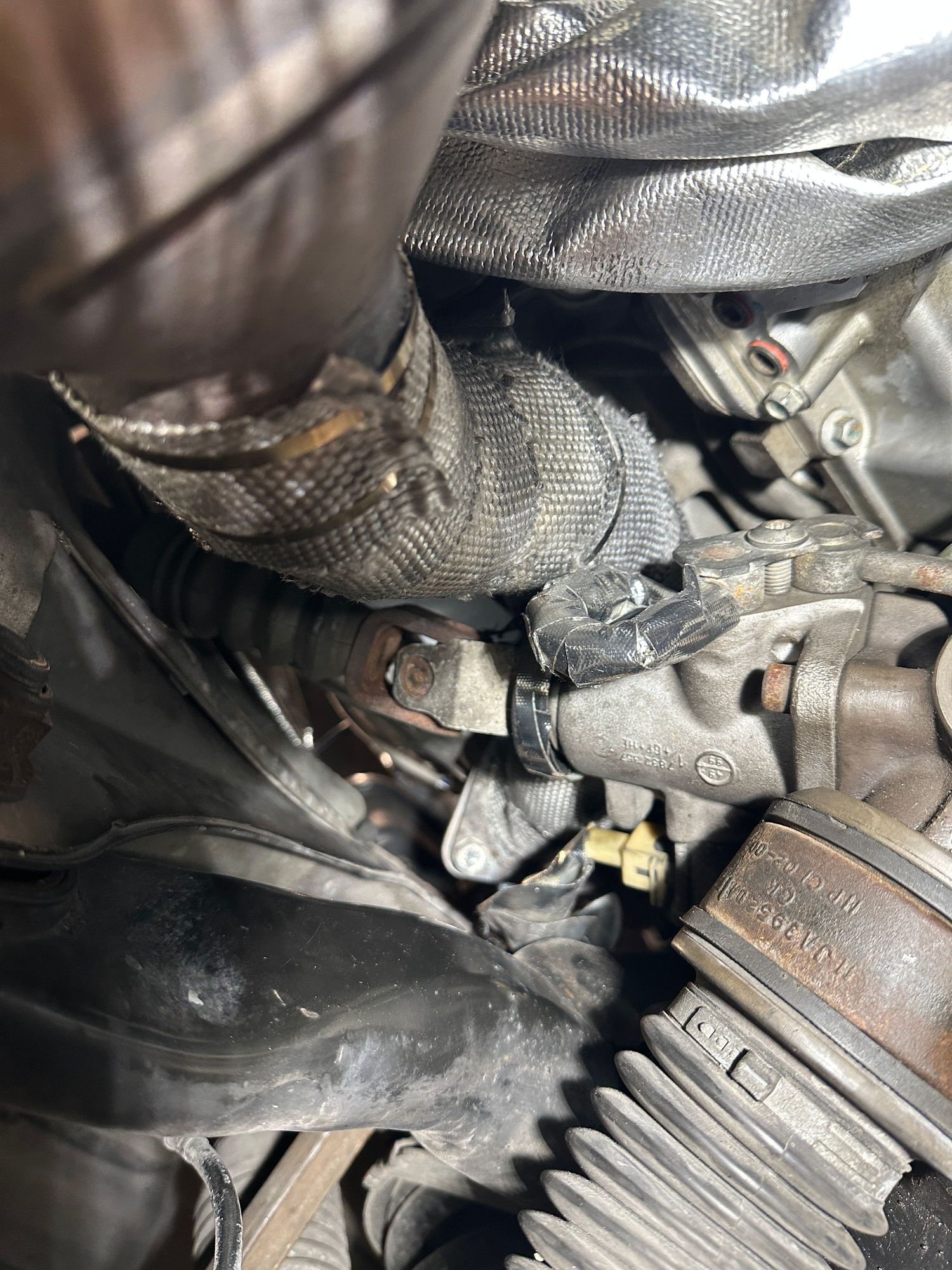 Here's where I added another layer of heat wrap, the clearance is really tight. You can see the hard line that I rewrapped too.