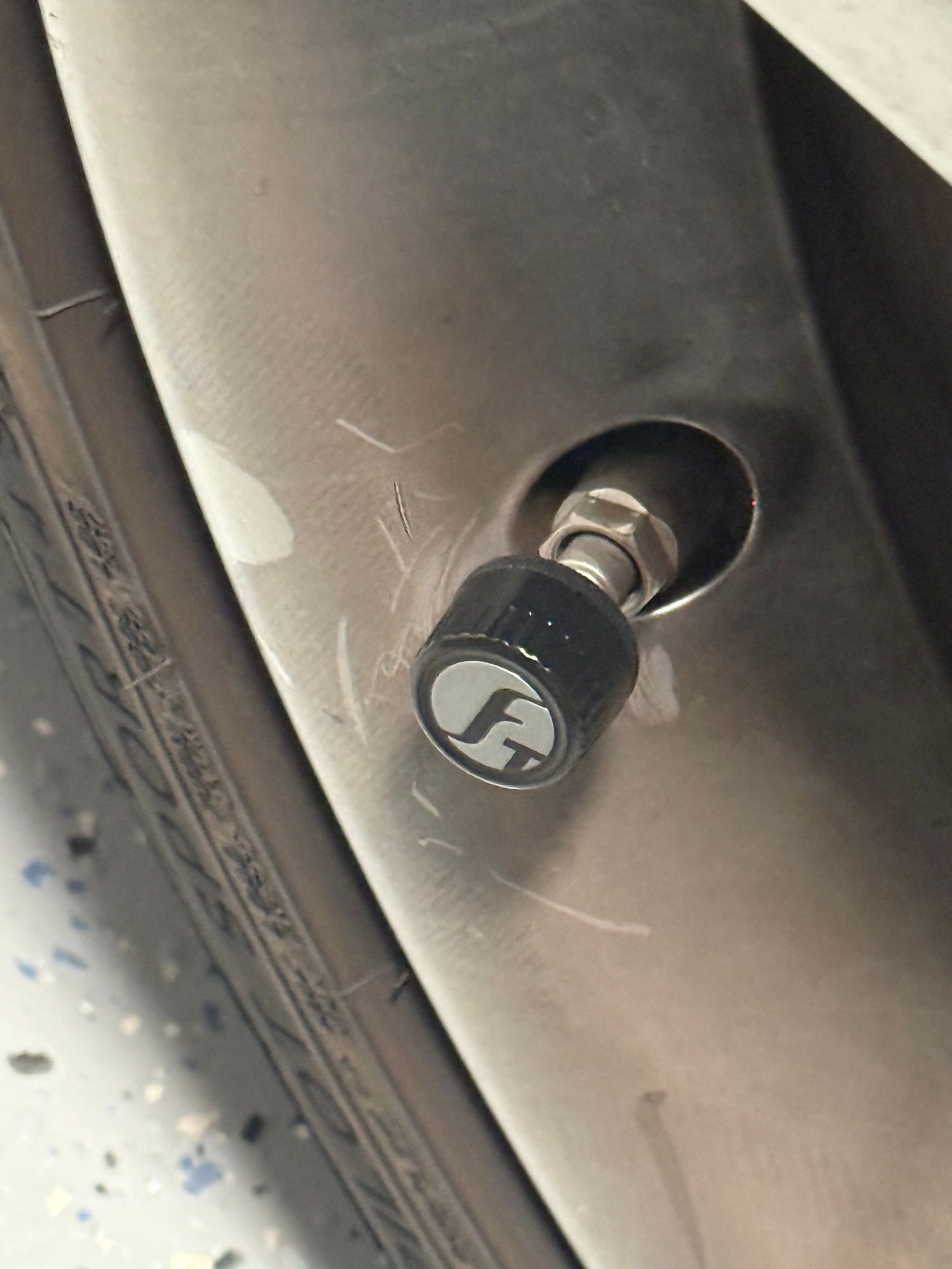 The tire stem sensor…forgive the brake dust.