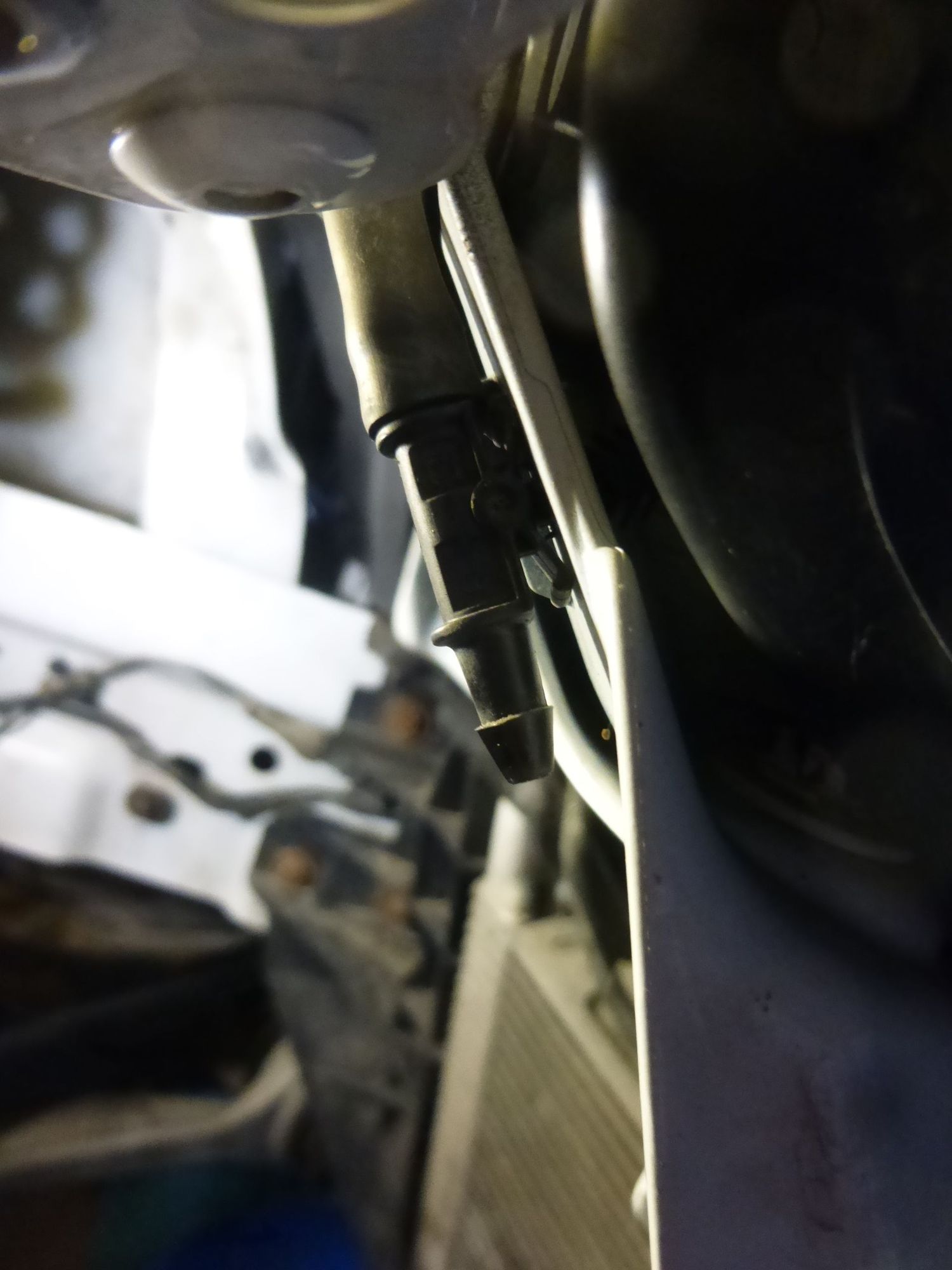 This is where you disconnect the headlamp washers water supply before dropping the bumper cover.