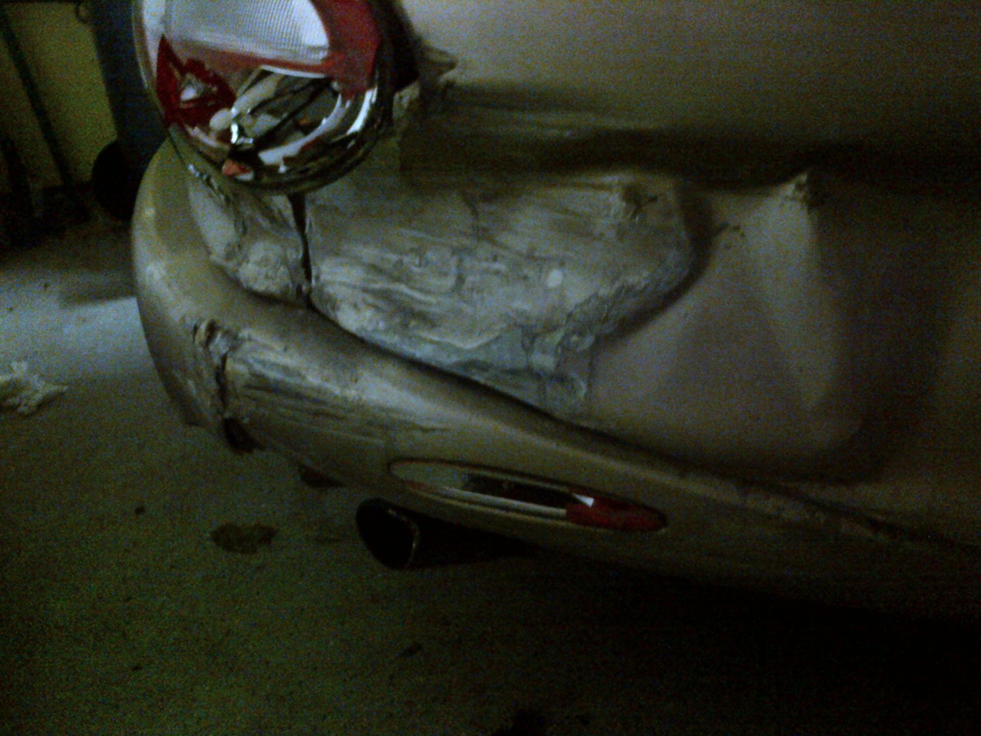 Note the side bumper, it went under the guard rail. Thank god someone invented the porta-power. This is 98% sheet metal damage.The other 2% are the light, trunk key area and the bumper cover.