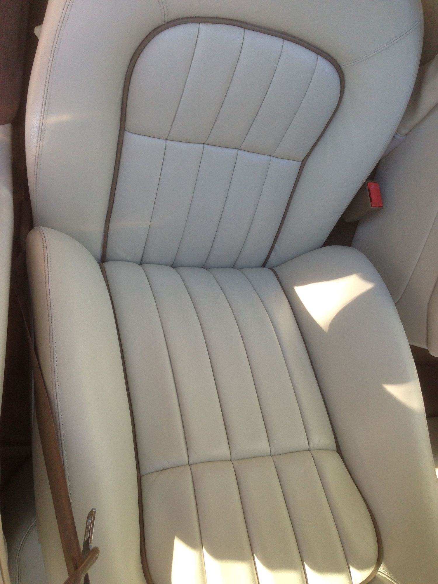 Looking down on the driver seat and the bolster. the heavy wear is gone.