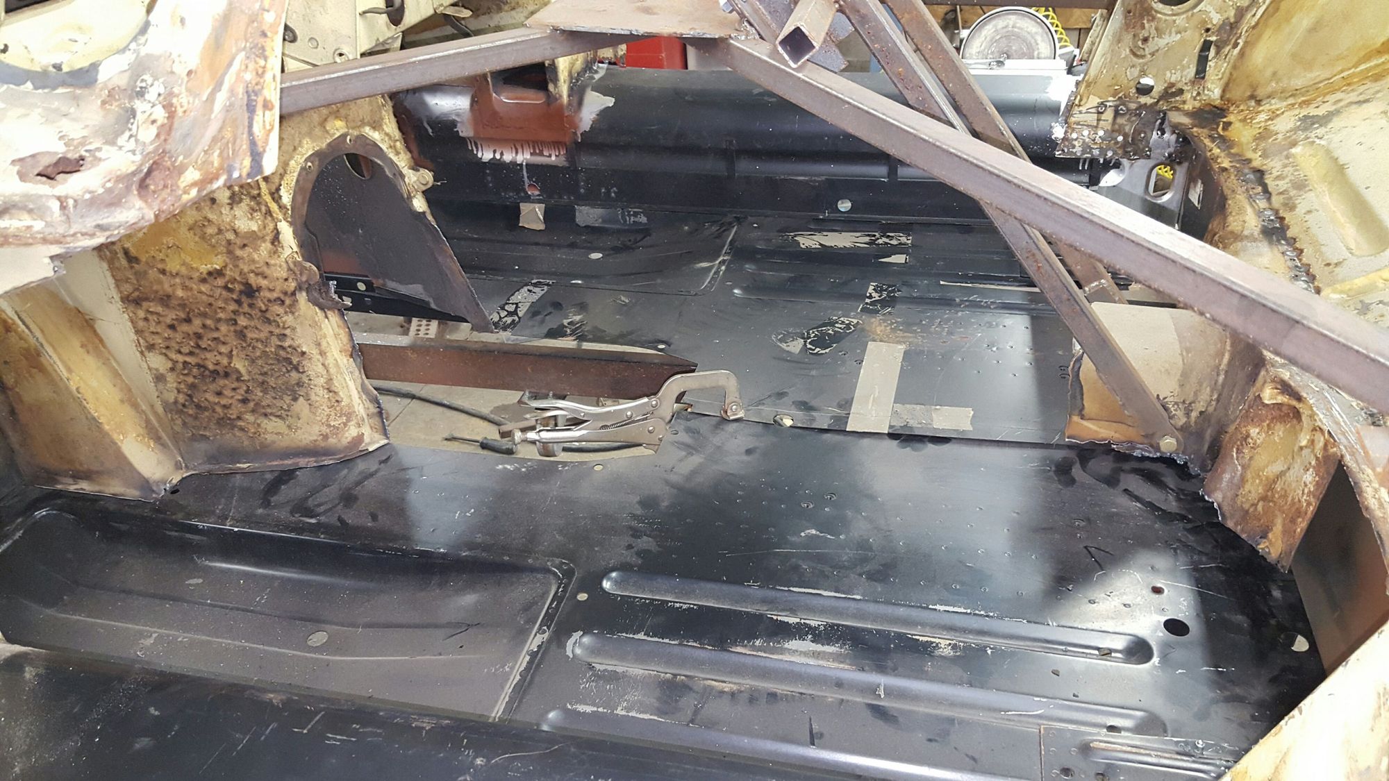 Both sides mocked in with self tapping screws. Awaitng parts order for transmission tunnel