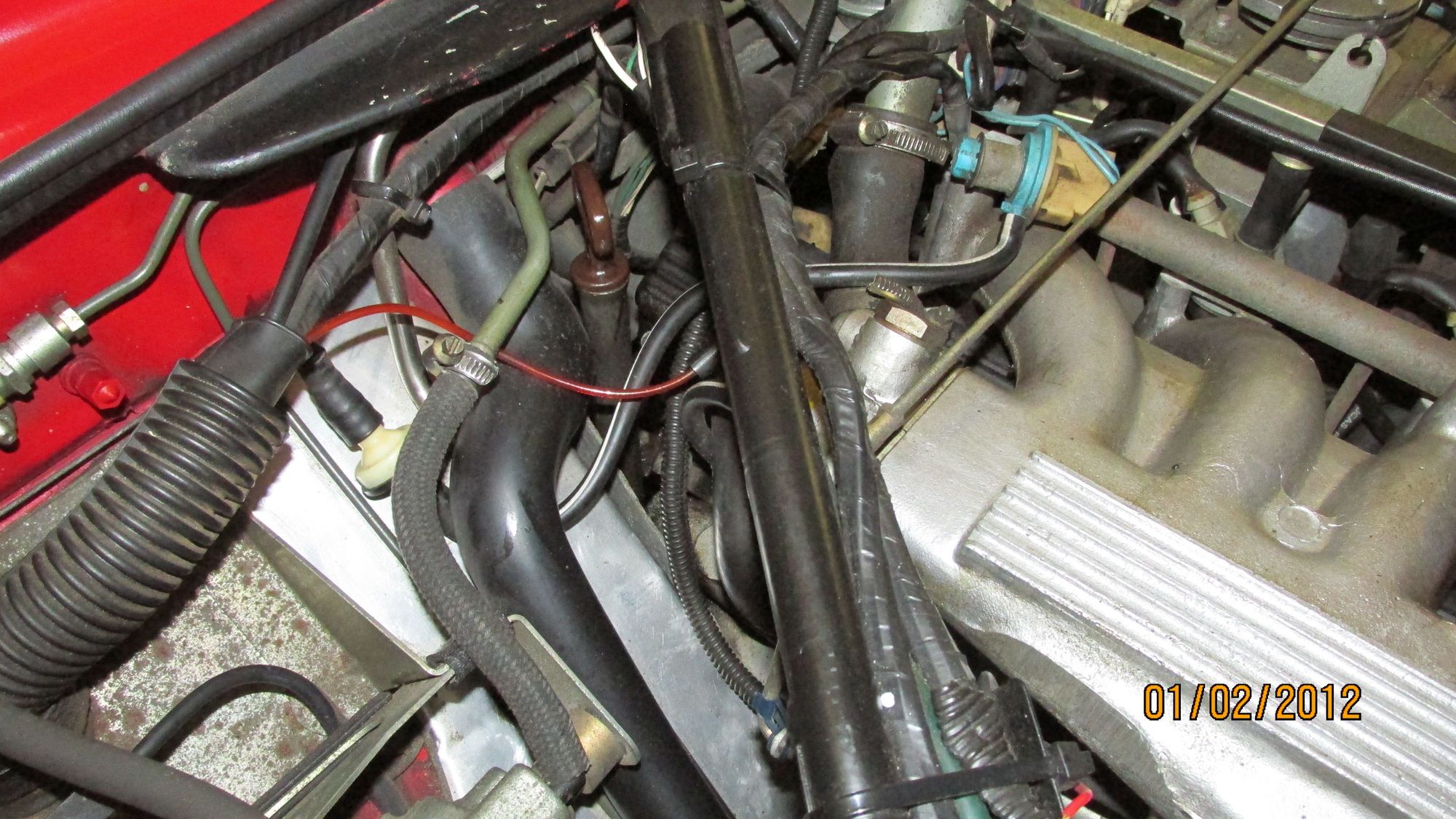 I "think" the vac tube comes out of the large rubber tube on the left side of the photo, goes into a "filter" and then connects at the manifold end.