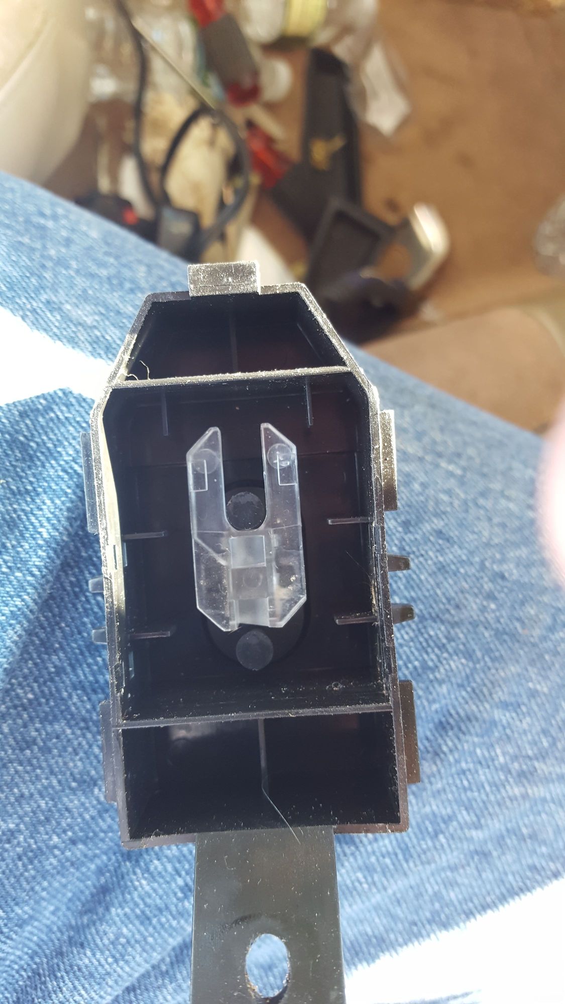 After removing greu rubber and circuit board, this is inside of switch. IMPORTANT do not invert. There are 2 black plastic plungers loose.