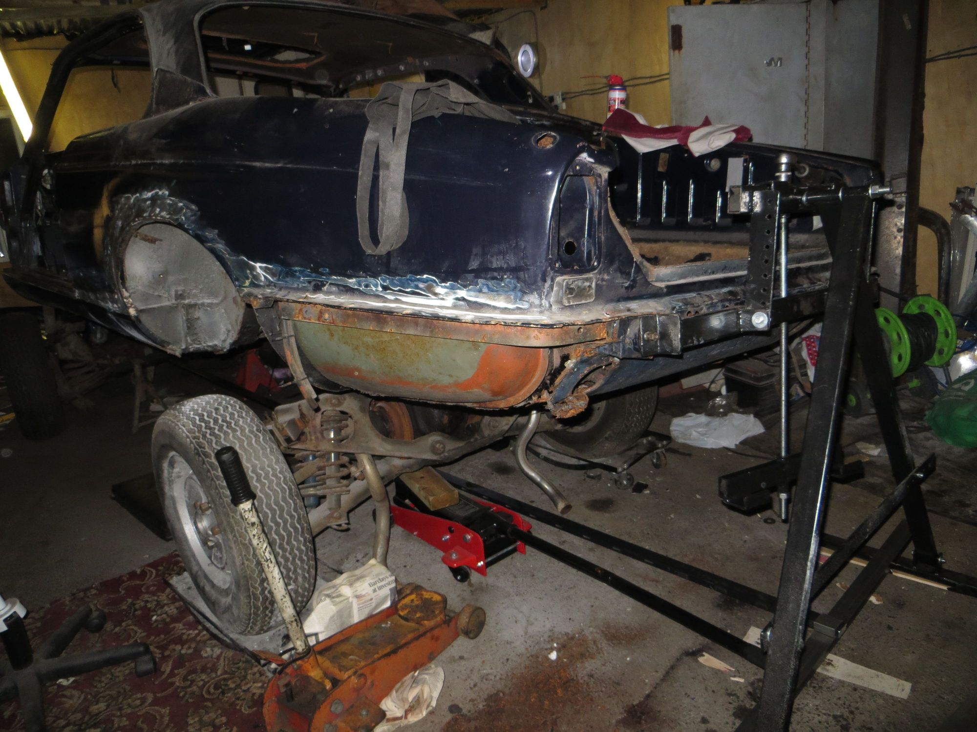 The back on the jig as well I disconnected the subframe, removed the exhaust except for the over axle pipes then wound it onto the rotisserie.