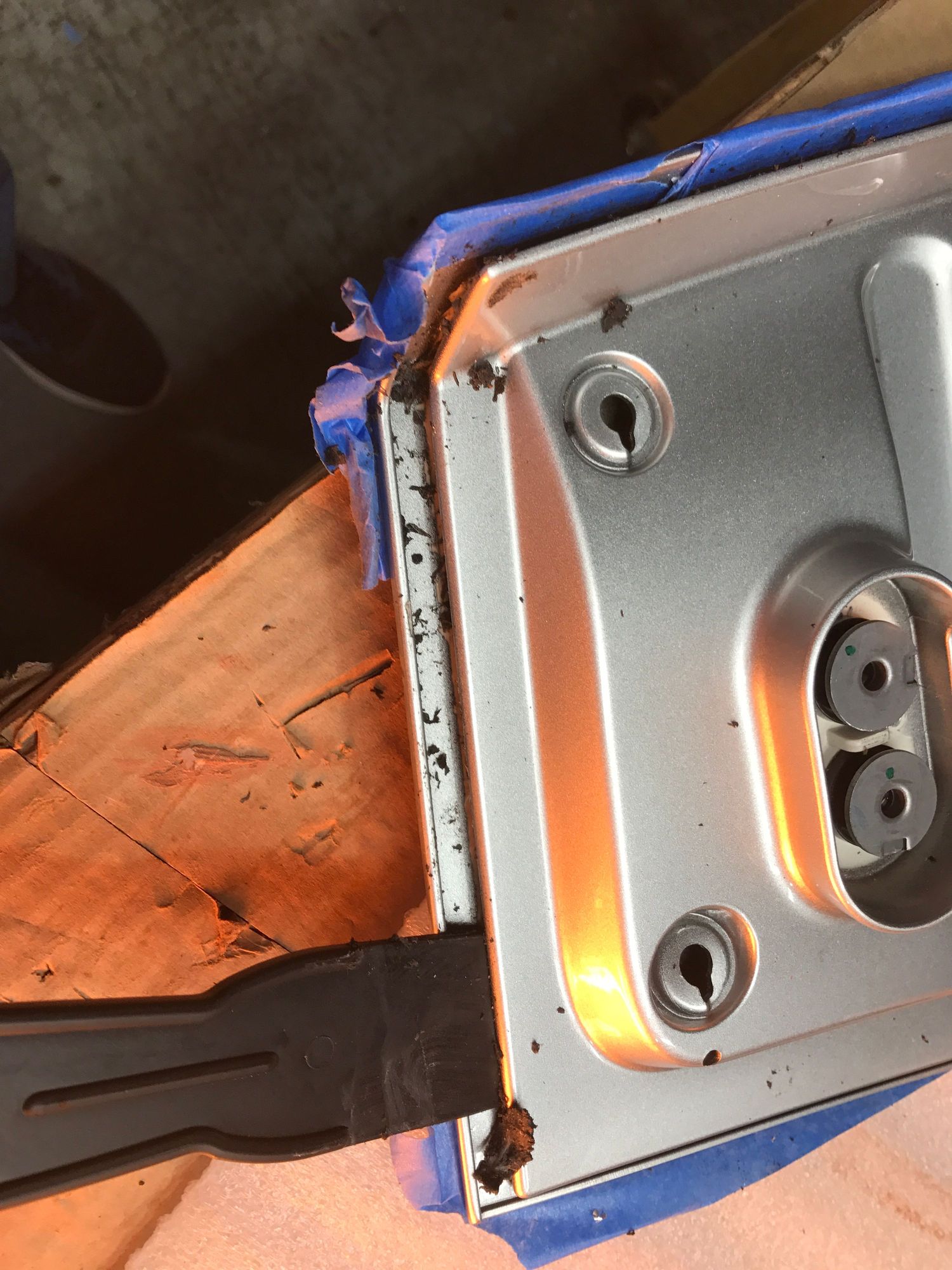 Working putty knife around perimeter between shells.