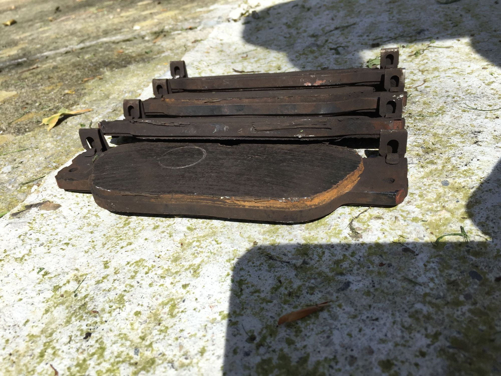 From front to back: Outer driver, inner driver, outer passenger, inner passenger. Front brake pads.