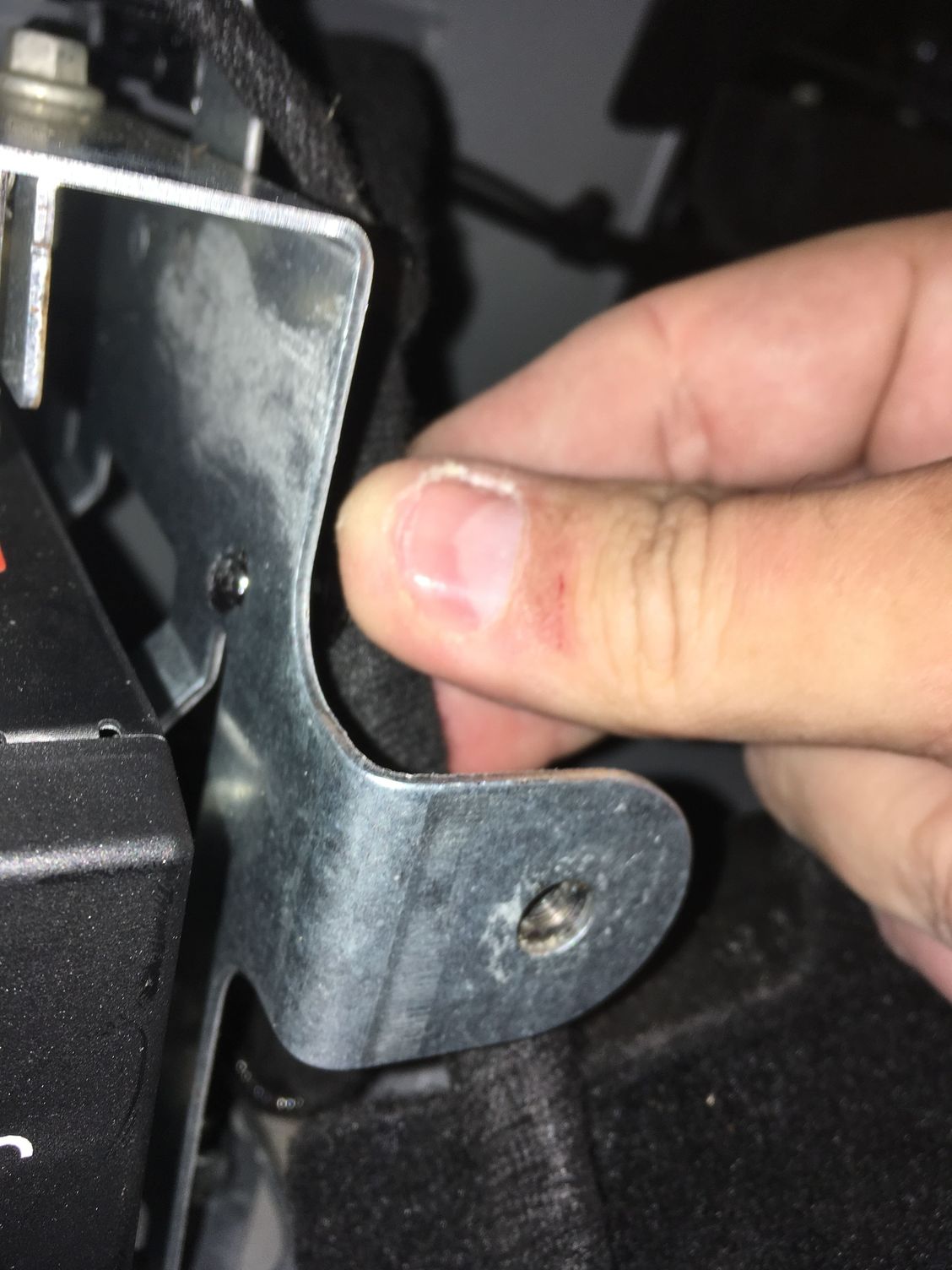 7. You will need to remove this cable hanger from the outside of the rack to be able to access the mounting screws. This is more easily done through the trunk, IMHO.