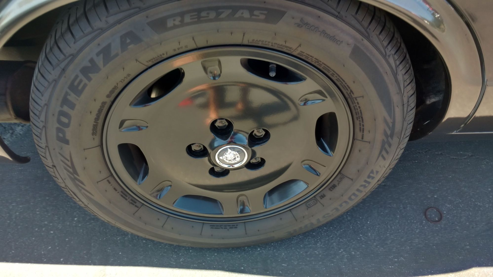 Satin black powder coated wheels. Less than 5K miles on new 225/60R16 Bridgestone RE92AS tires.