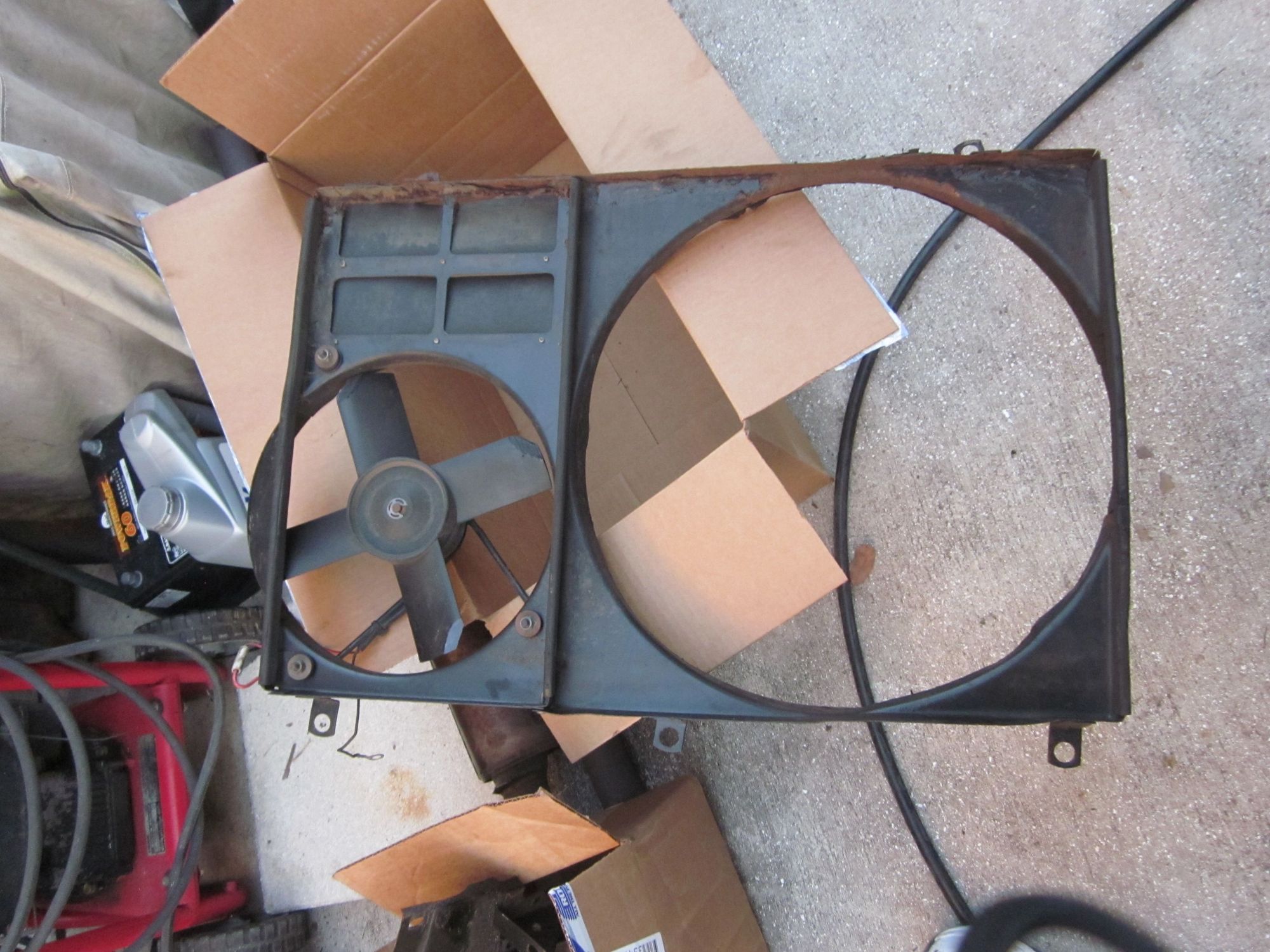 Fan shroud with elec fan. Some surface rust on bottom but not mangled or dented up