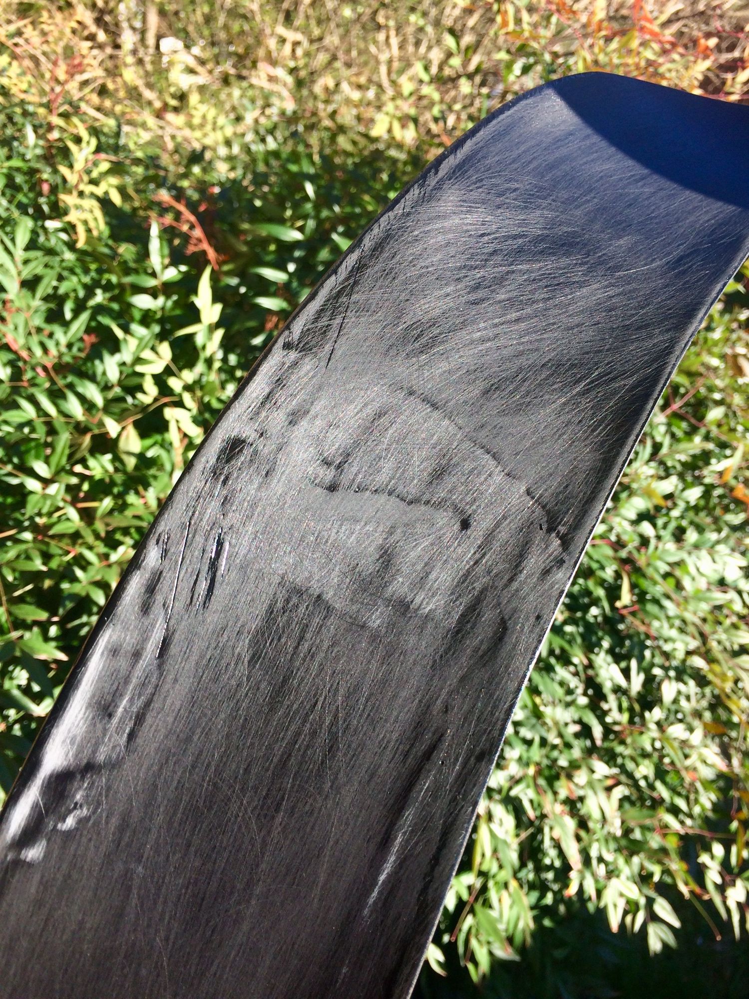 Gloss black enamel and 100 grit. Rinse and repeat.