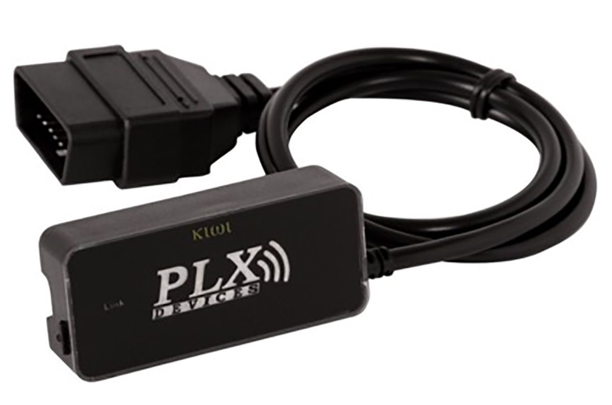 PLX Kiwi 2 WiFi showing connector for OBD II port and small "wake up" button