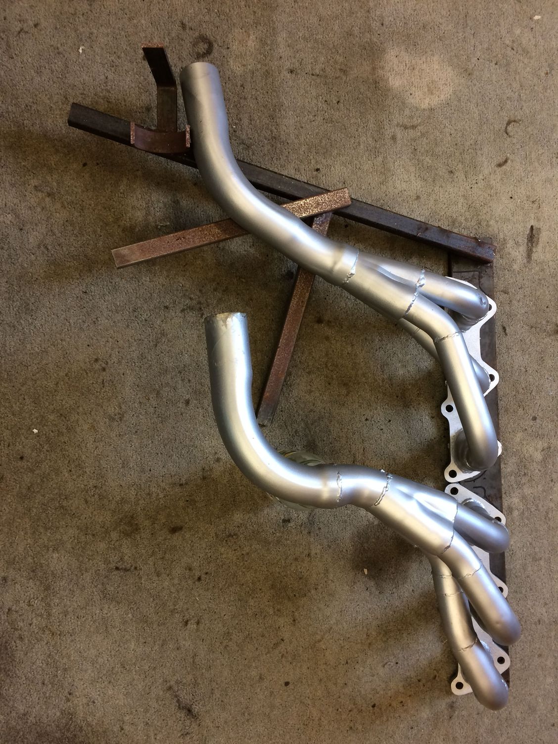 Fabricated exhaust manifolds on X300 exhaust manifold and downpipe jig