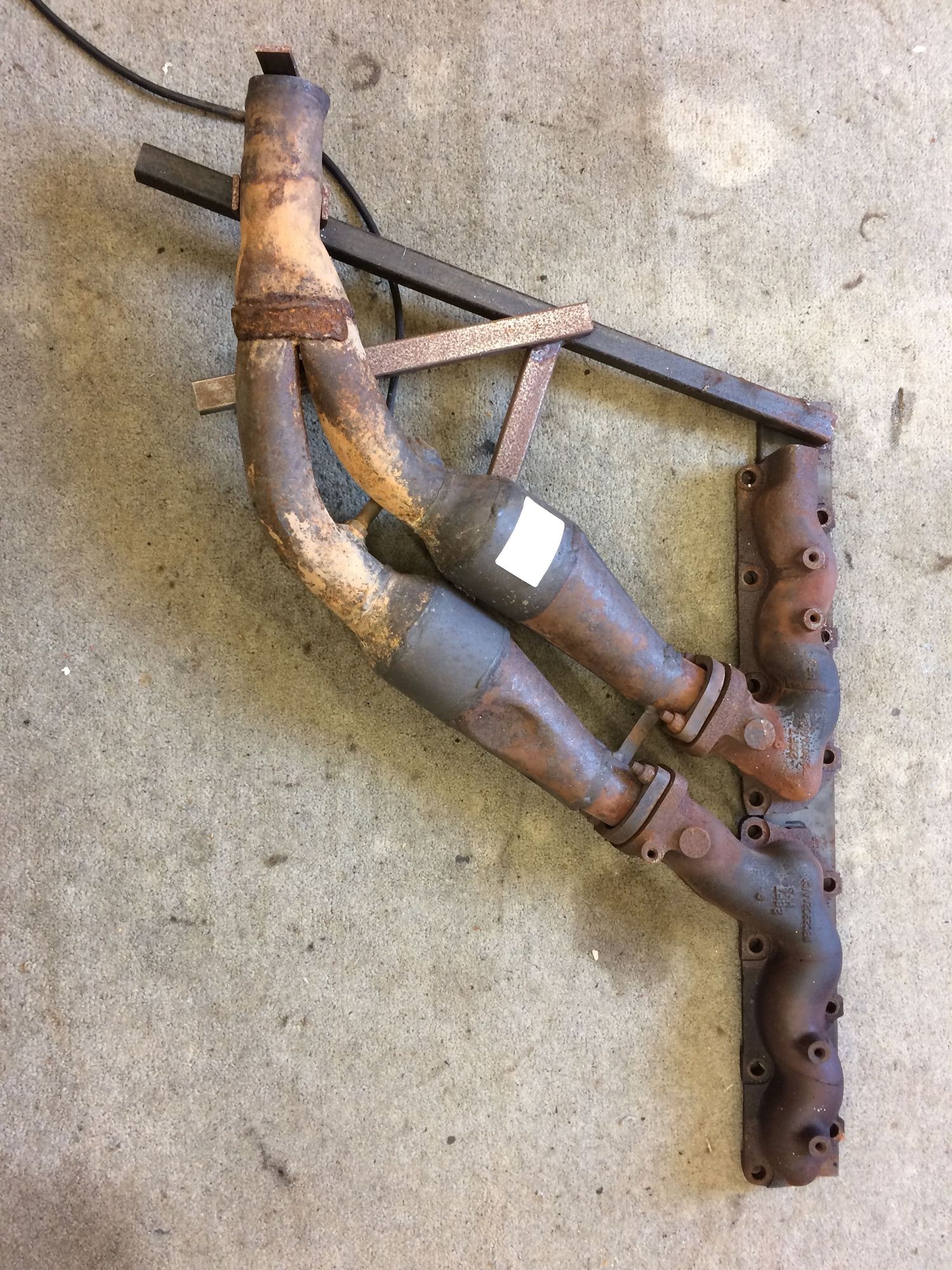 X300 exhaust manifolds and downpipes on homemade jig