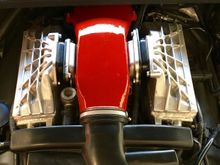 A week later.... View showing the PSE rebuilt and powder coated supercharger along with the Eurotoys 1.5 lbs pulley.