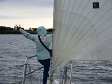 Captain Courageous at the helm, passing under the Newport bridge. We didn’t hit it.