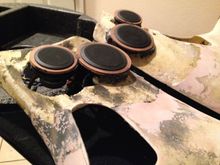 Wrapped in suede just like headliner. It sounds amazing up front cant wait to get rear pillars done