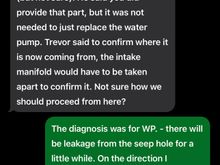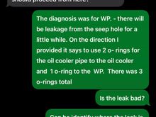They said the leak is coming from the water pump. He was supposed to put 2 gaskets on the oil cooler pipe and connecting to the oil cooler pipe that is between the Water Pump and Manifold. Should I ask that he transfers the 179.50 to the flange replacement? That now needs to be done?
