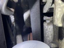 Looks like smooth out is on the AC compressor and Robbed is on the crankshaft pulley.