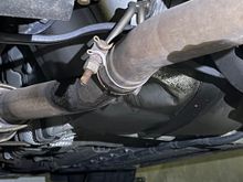 Zoomed in a bit. Hose connection with the issue is quite obvious with orange caked around the clamp. It is over the edge of the under engine cover.